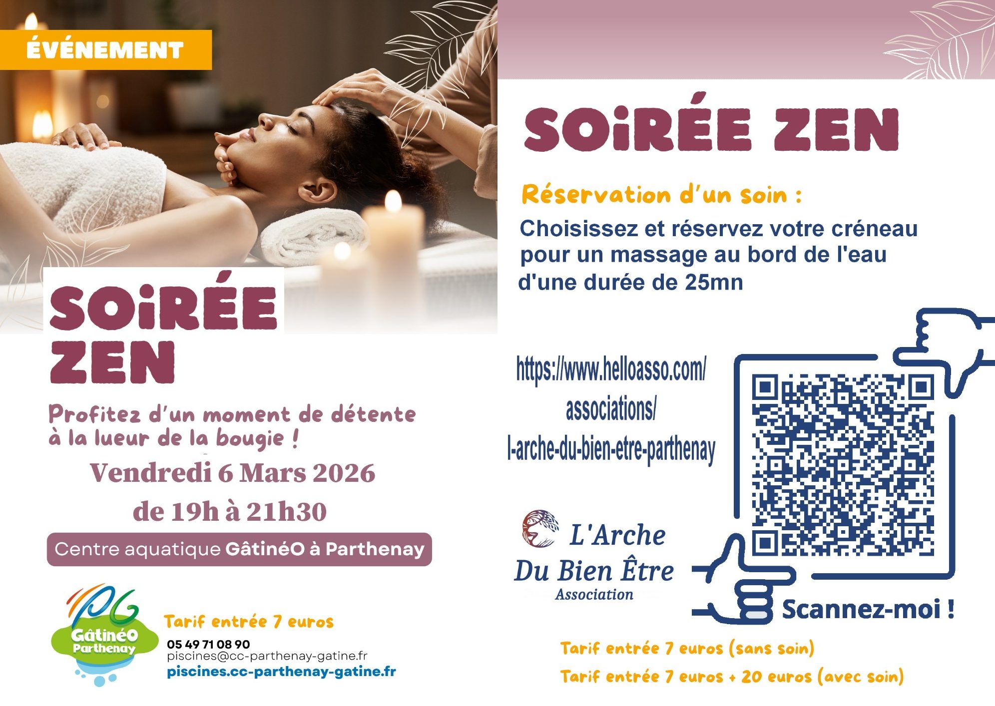 Notre prochain évènement : SOIREE ZEN CENTRE AQUATIQUE GATINEO PARTHENAY